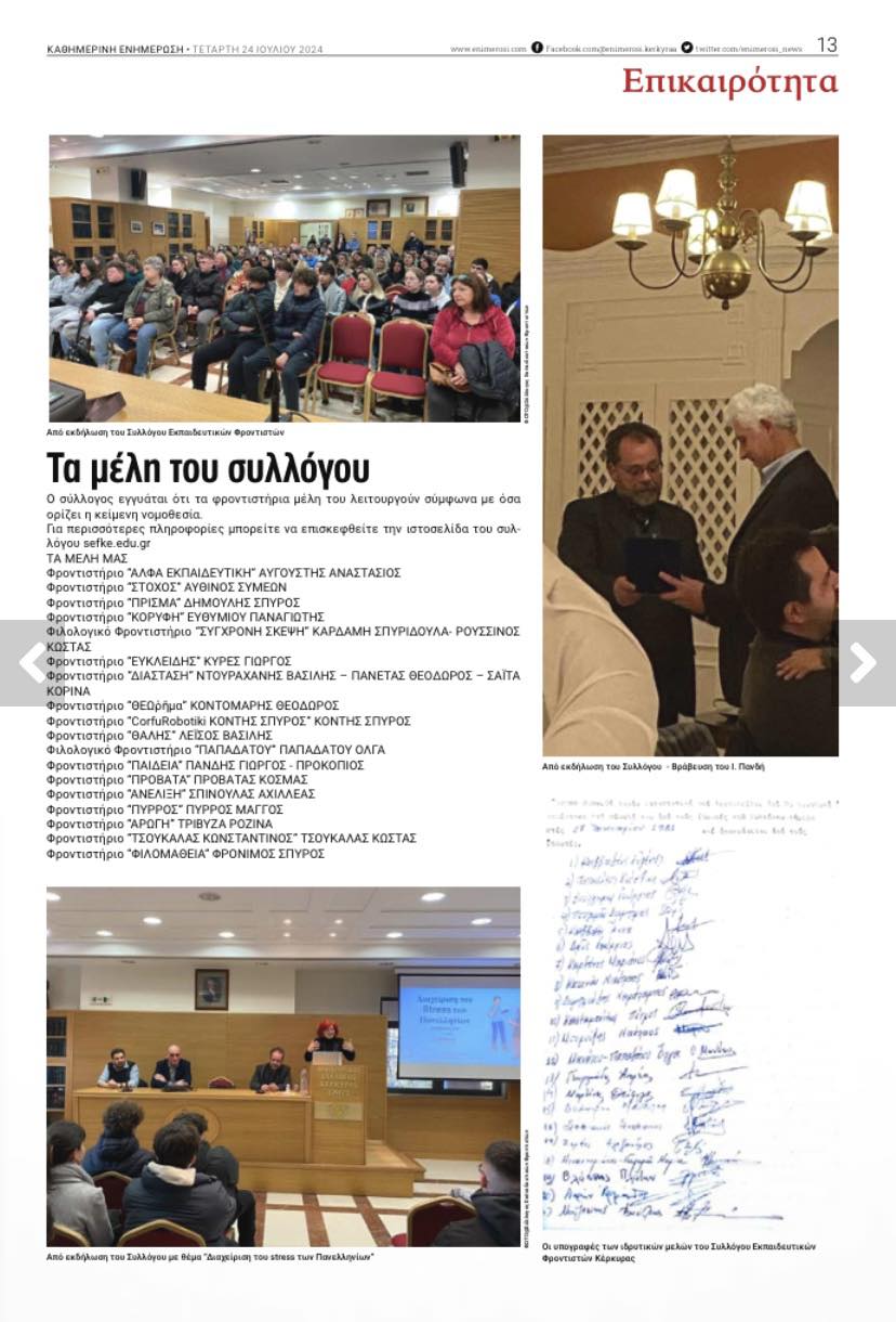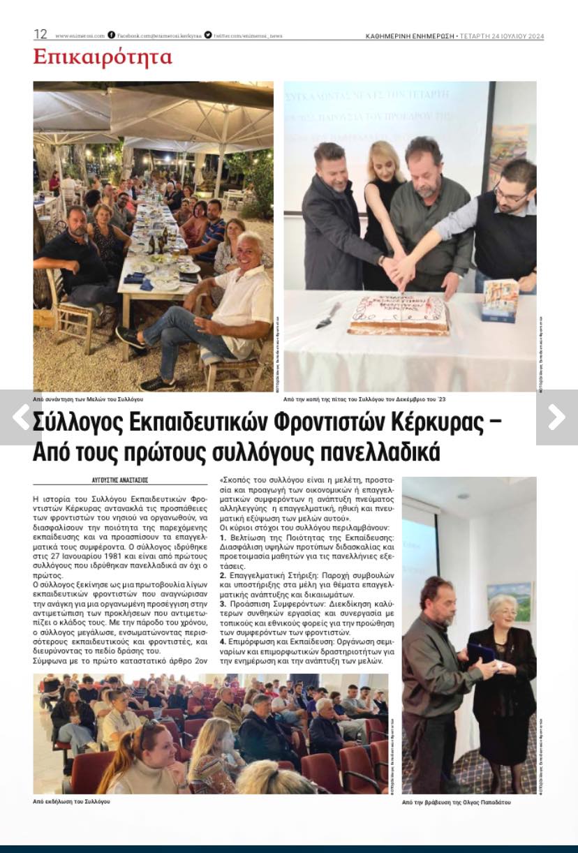 Αφιέρωμα της εφημερίδας «Ενημέρωση» στο σύλλογό μας!